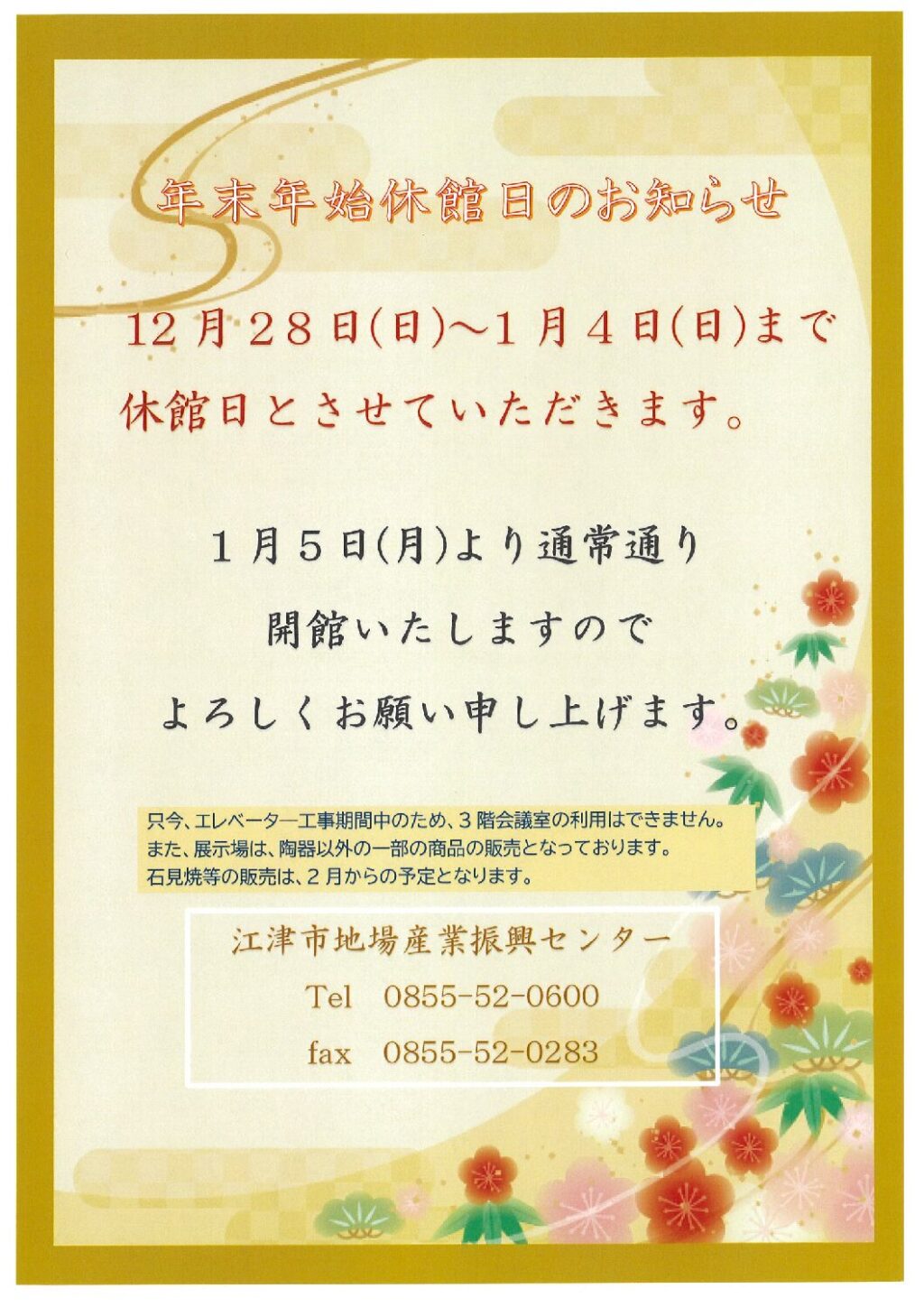 年末年始休館日のお知らせです。